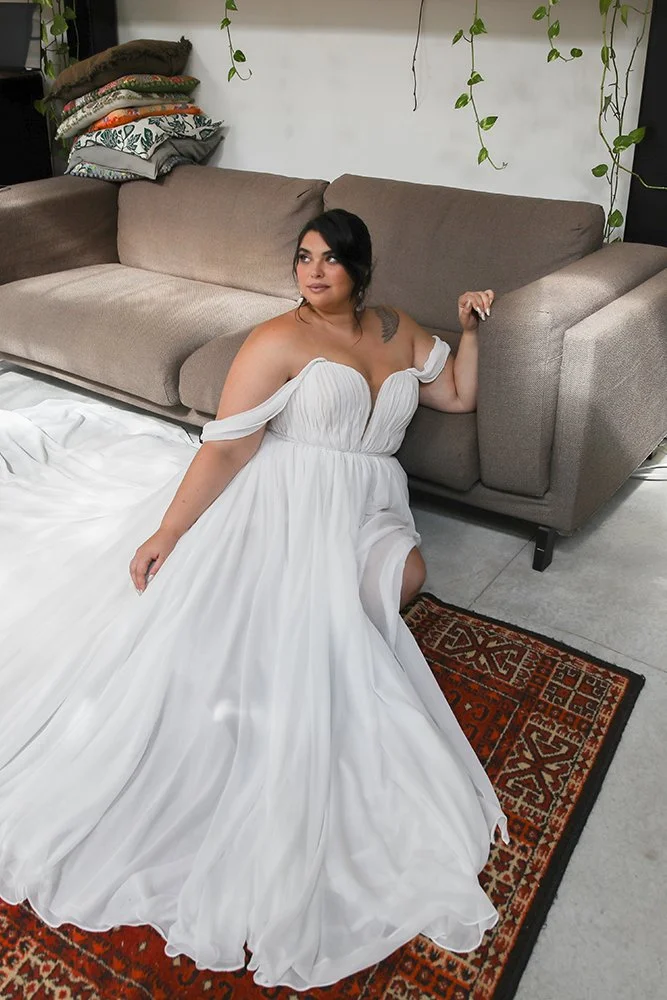 We are always happy when we can offer our plus size wedding dresses for immediate purchase and for a great price! Some of these dresses are brand new never worn and some need a little TLC to get them ready for their moment in the spotlight! Whatever these gorgeous curvy wedding dresses require, you can take advantage of our discounted dry clean option and make the most of our recommended wedding dress seamstresses who will perform your bridal alterations and make sure your chosen dress fit like a dream!